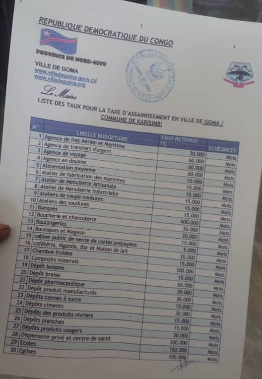 Après le lancement improductif des activités de la caisse générale d’épargne du Congo (CADECO), la rébellion soutenue par le Rwanda a annoncé la mise en place d’une taxe dite « taxe d’assainissement ».