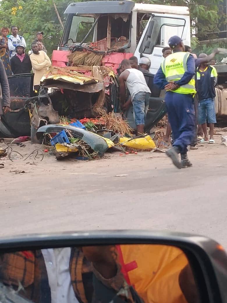 Selon les informations recueillies sur le lieu du drame, un camion poids lourd en perte de vitesse est entré en collision avec une voiture Toyota IST au niveau de Libulu, près de l’entrepôt FCC, à quelques encablures du poste de péage, à l’entrée de la ville de Kinshasa.